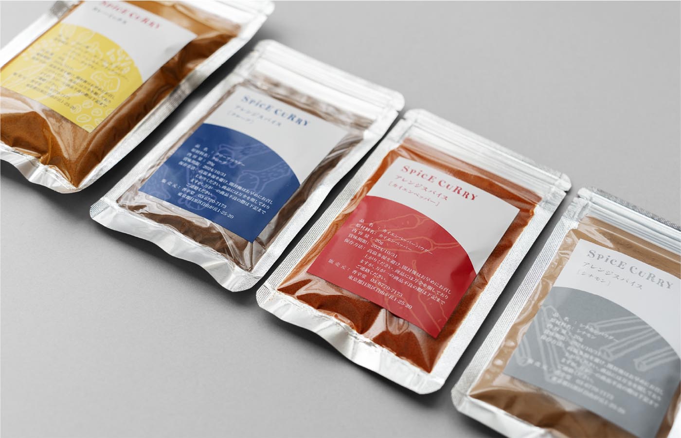 カレースパイスのエスニックな雰囲気が伝わるようなカラーリングやタイトルロゴを設定し、11種類のスパイスが使われていることを、それぞれのスパイスをイメージしたカラーで描写し、文字通り彩り豊かなスパイスであることを表現しました。