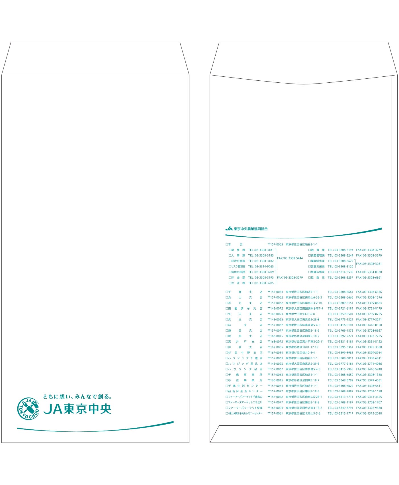 シンボルマークは、農業のイメージとして「鍬」をモチーフに、コンサルティング(相談)のイメージとして「ペン」を組み合わせて、 さらに組合名の英語表記と組み合わせることで、オリジナリティとメッセージ性を高めています。 また、ペンはアイデアや発想の元になるモチーフとして“共想”の象徴、鍬はモノを創り出すモチーフとして“協創”の象徴でもあります。 マークの囲いは「C」を模しており、「C」を頭文字とする様々な要素や意味(中央:Chuo、協同組合:Cooperative、共想:Co-Conception、協創:Collaborative、耕す:Cultivate…など)を包括しています。 格式と存在感があり、事業内容をストレートに表現したデザインです。