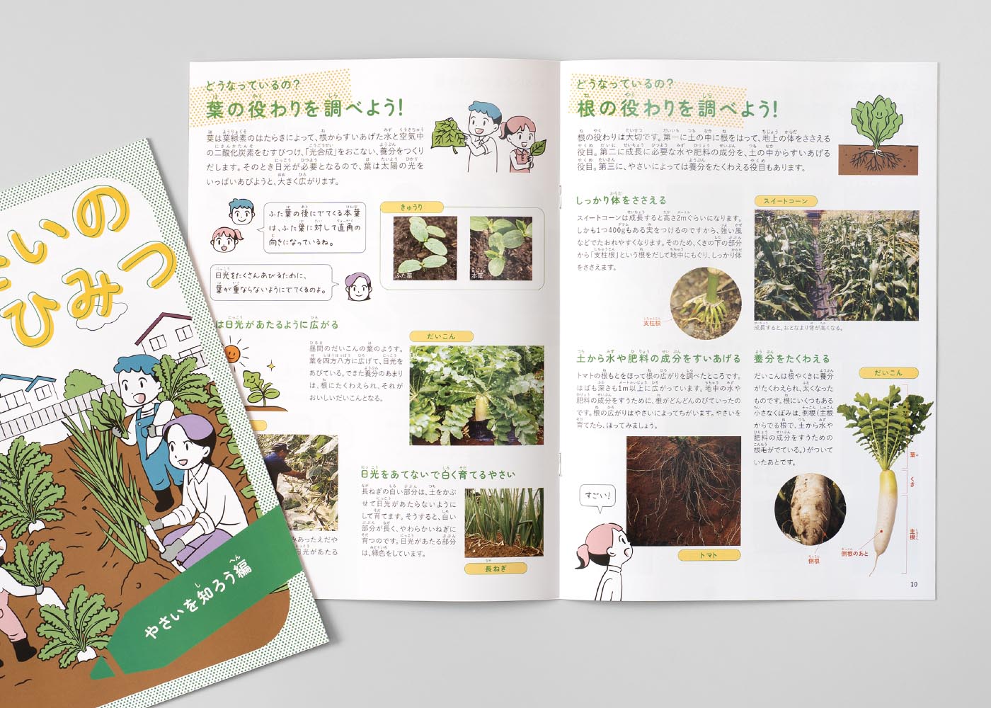 「やさいのひみつ」コンテンツを、東京都内の小学校で使用される教材向けに再編集し、パンフレットとしてリデザインしました。