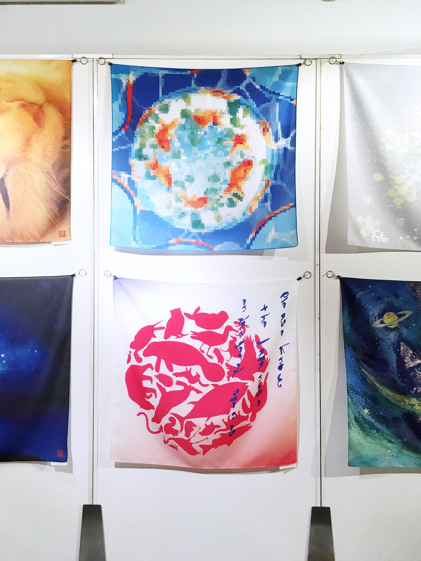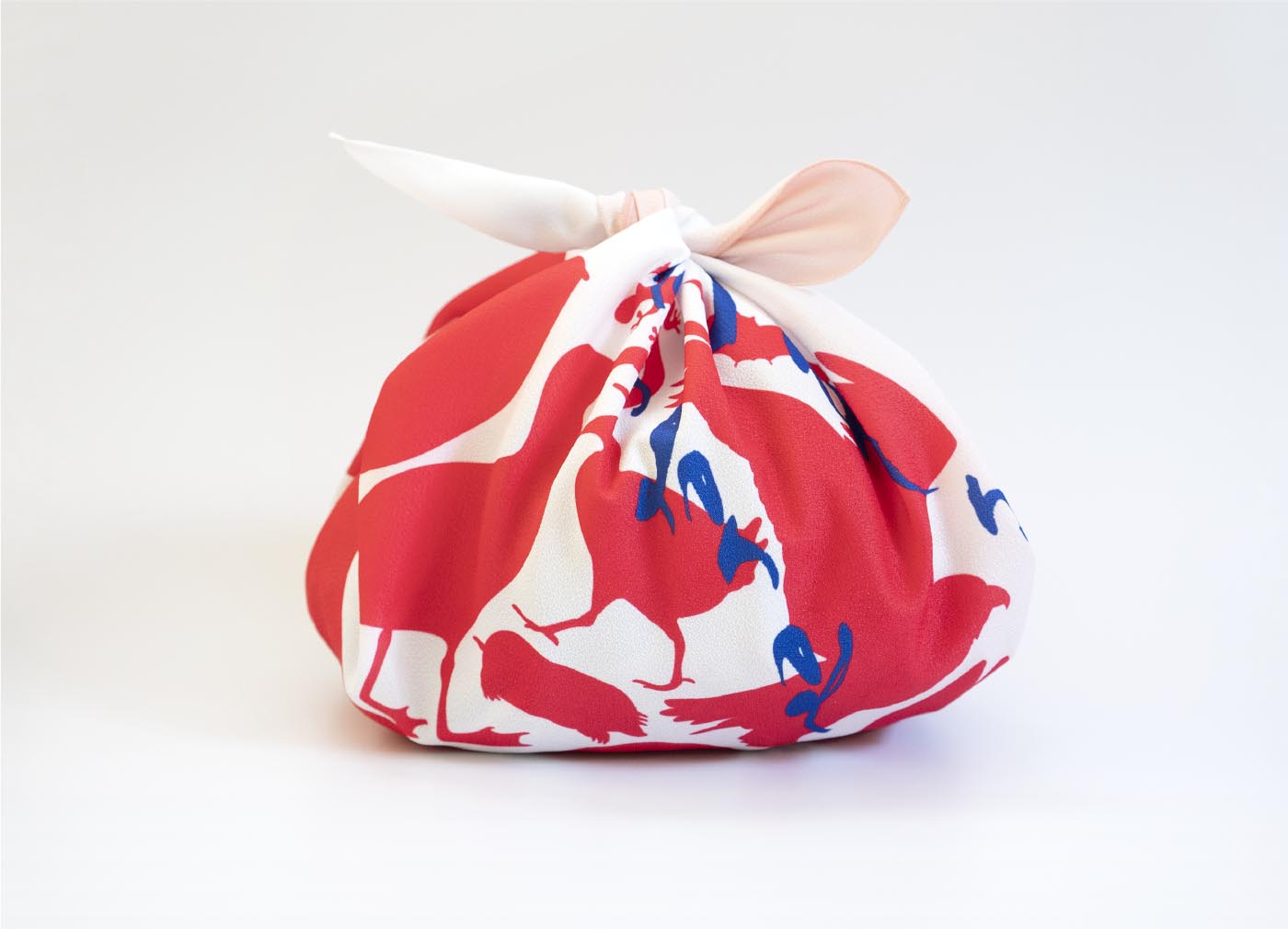 「日本の心と文化」をテーマに、日本における絶滅危惧種をモチーフにしたグラフィック風呂敷と、祭の金魚すくいをモチーフに、包んだときに金魚鉢のように見えるデザインの風呂敷とを制作いたしました。