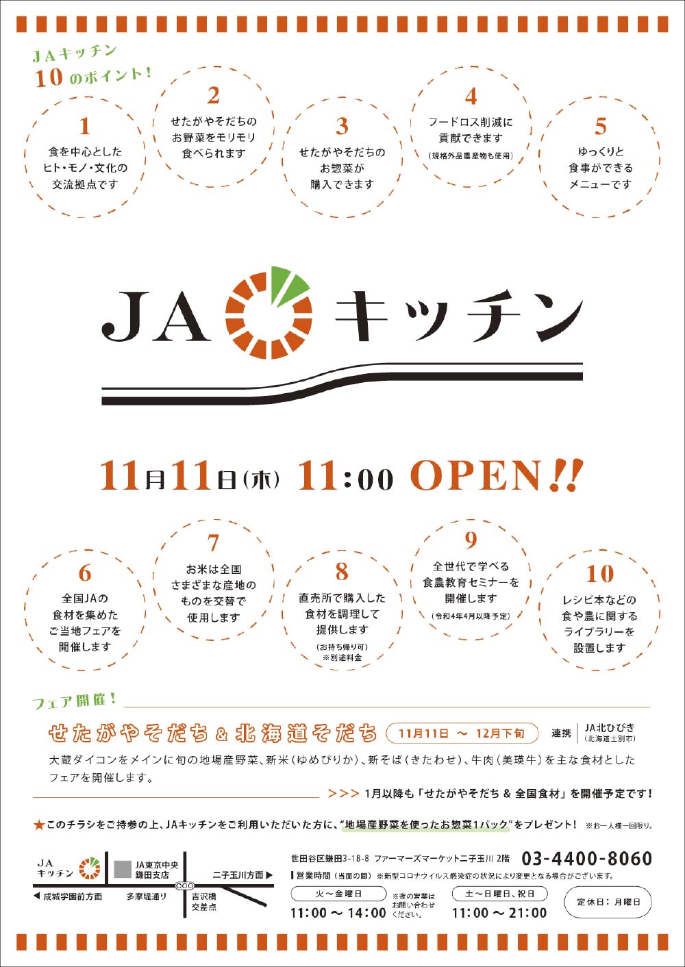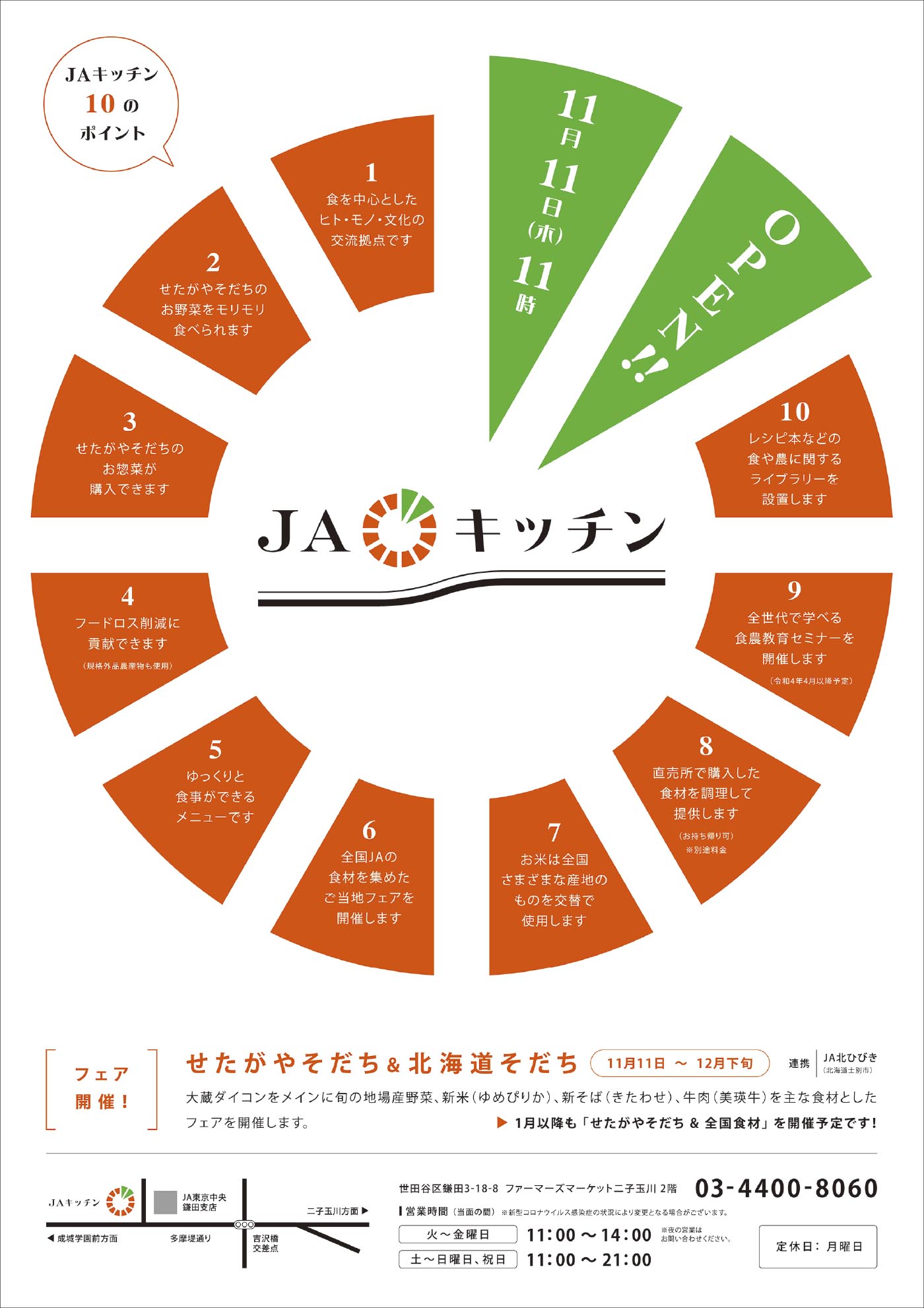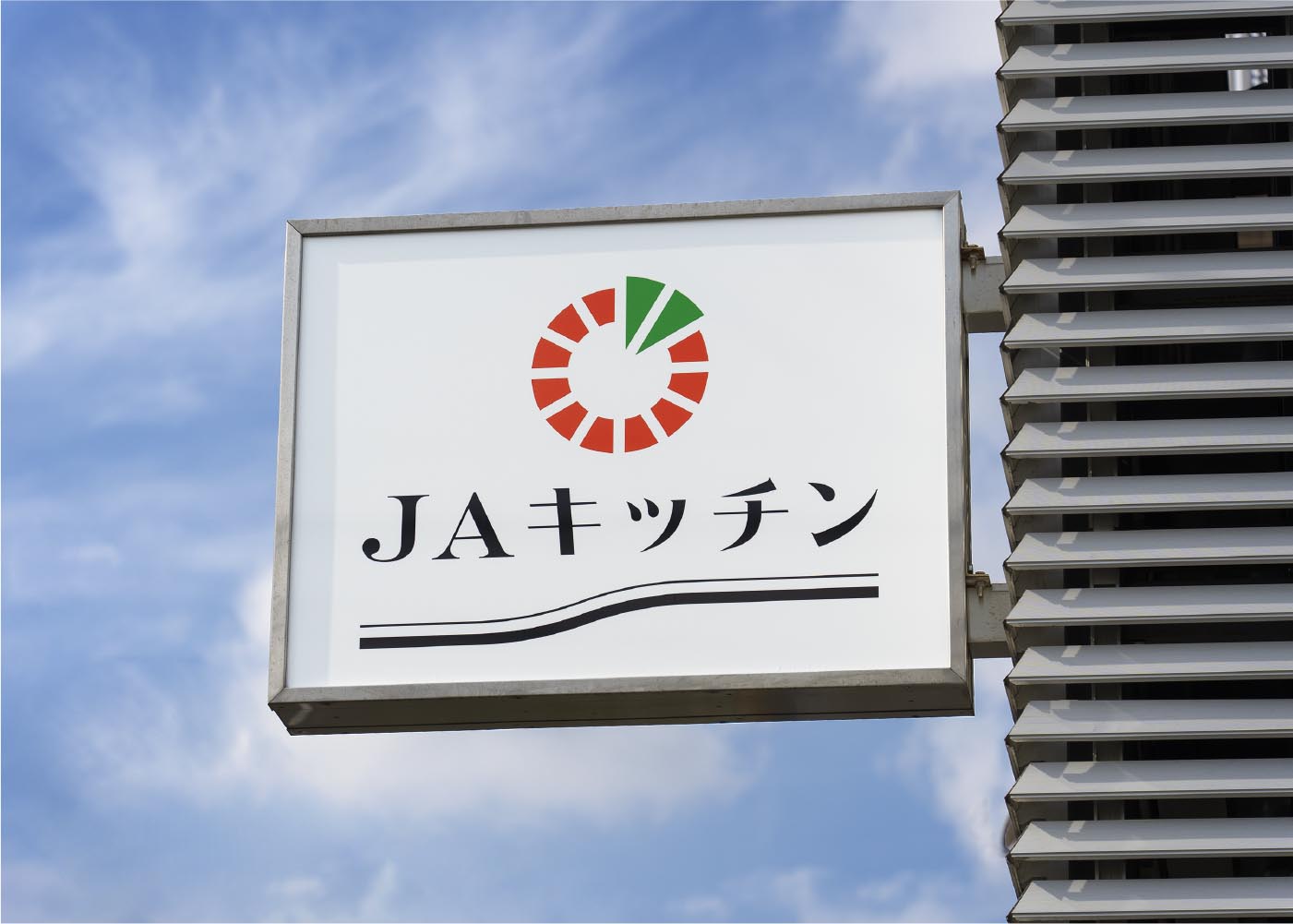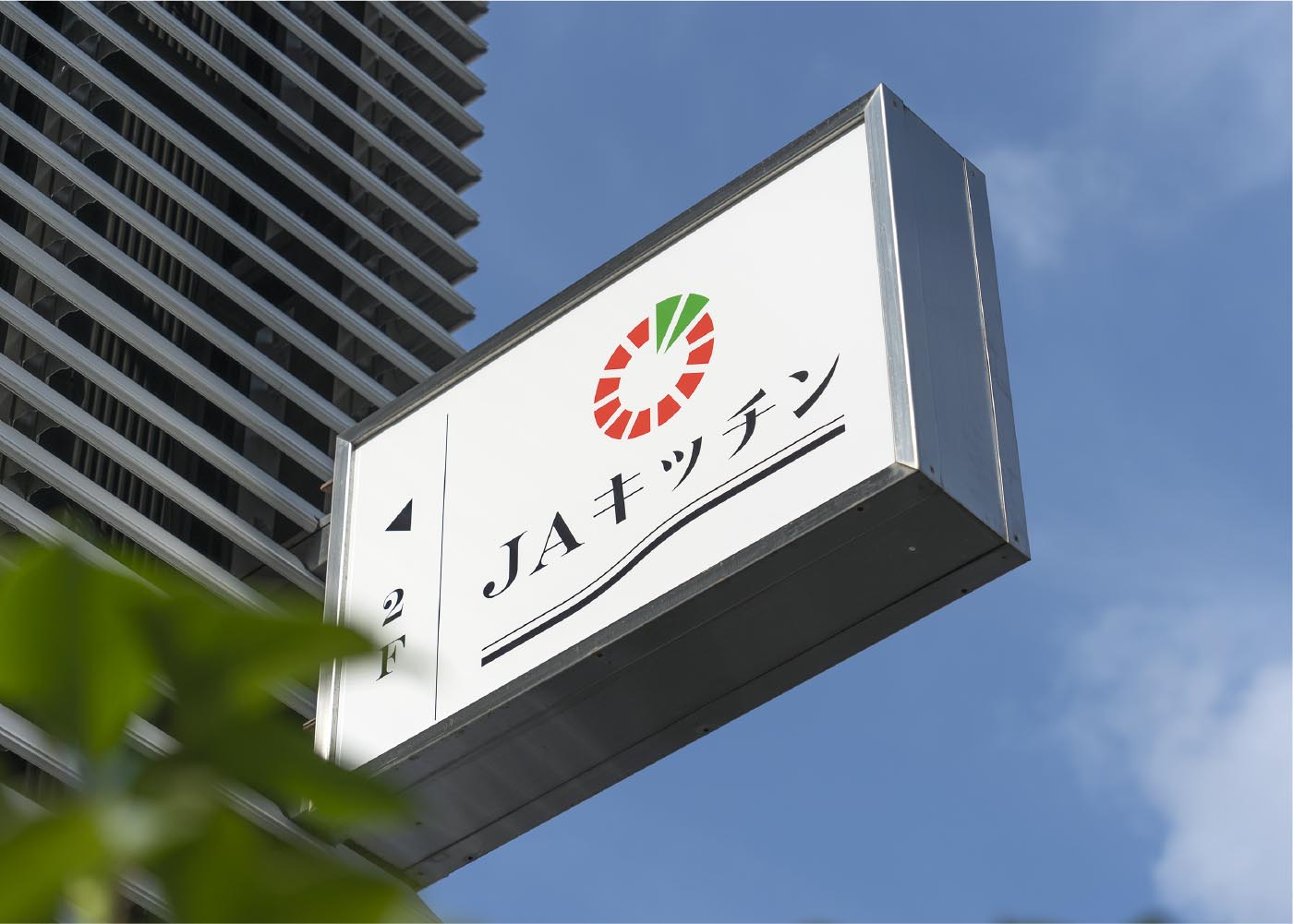 地場産野菜や全国各地の農産物を使用した料理を提供するレストラン「JAキッチン」のロゴマークおよびサインをデザインいたしました。