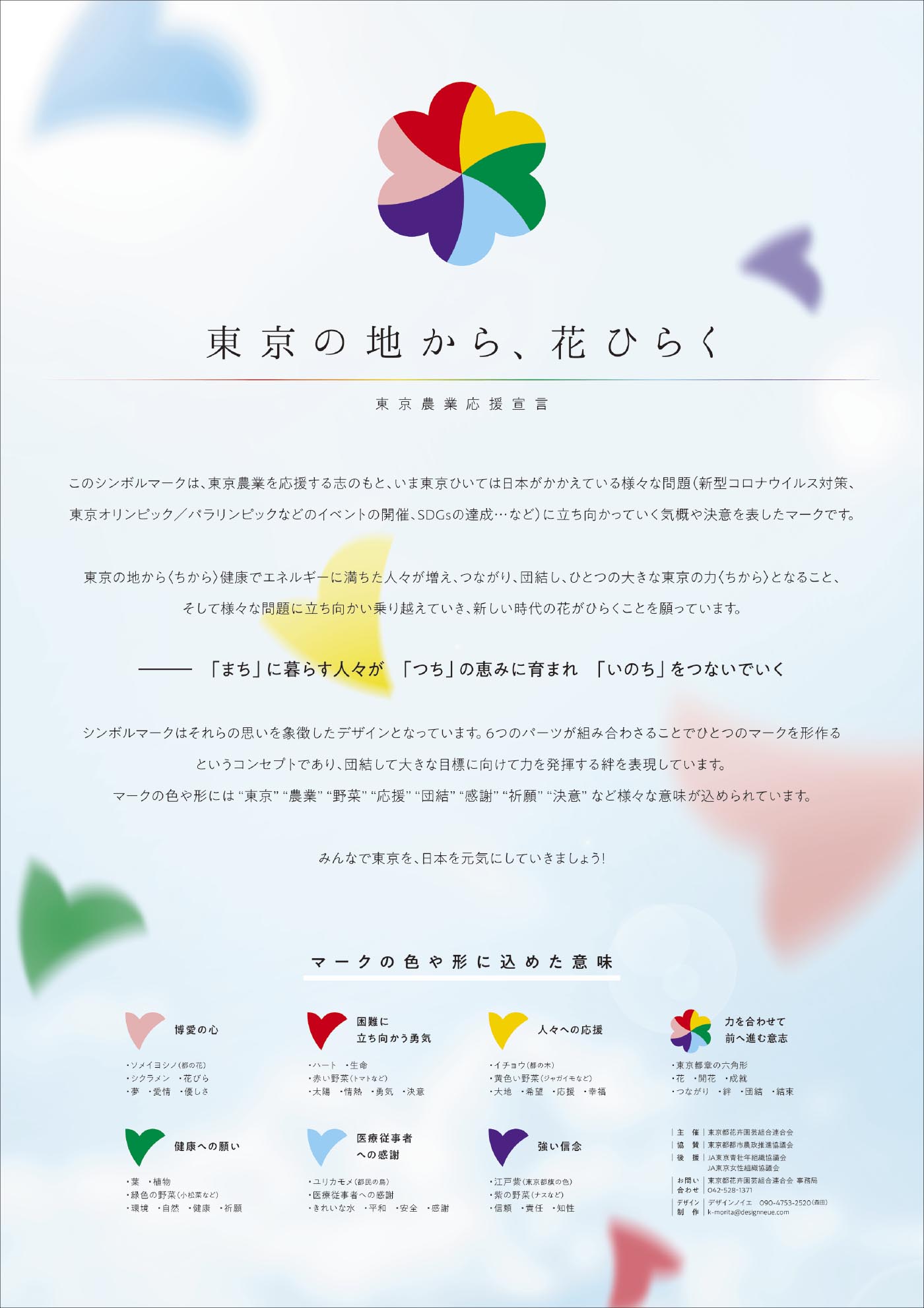 東京農業を応援する志のもと、東京ひいては日本がかかえている様々な問題(新型コロナウイルス対策、東京オリンピック/パラリンピックの開催、SDGsの達成…など)に立ち向かっていく気概や決意を表したマークとスローガンです。