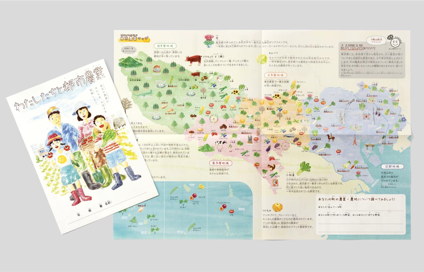 折パンフレット仕様になっていて、広げると東京都の地図と、各地で栽培されている野菜などが紹介されています。
