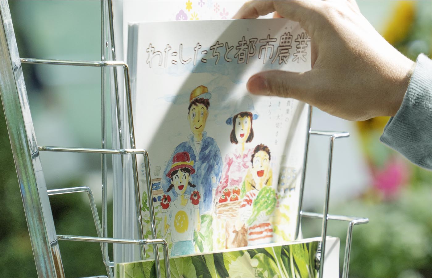 全体を通して、優しい水彩イラストで描くことで、子どもたちに親しみをもって、都市農業について理解を深めてもらいたいとの思いで制作しました。