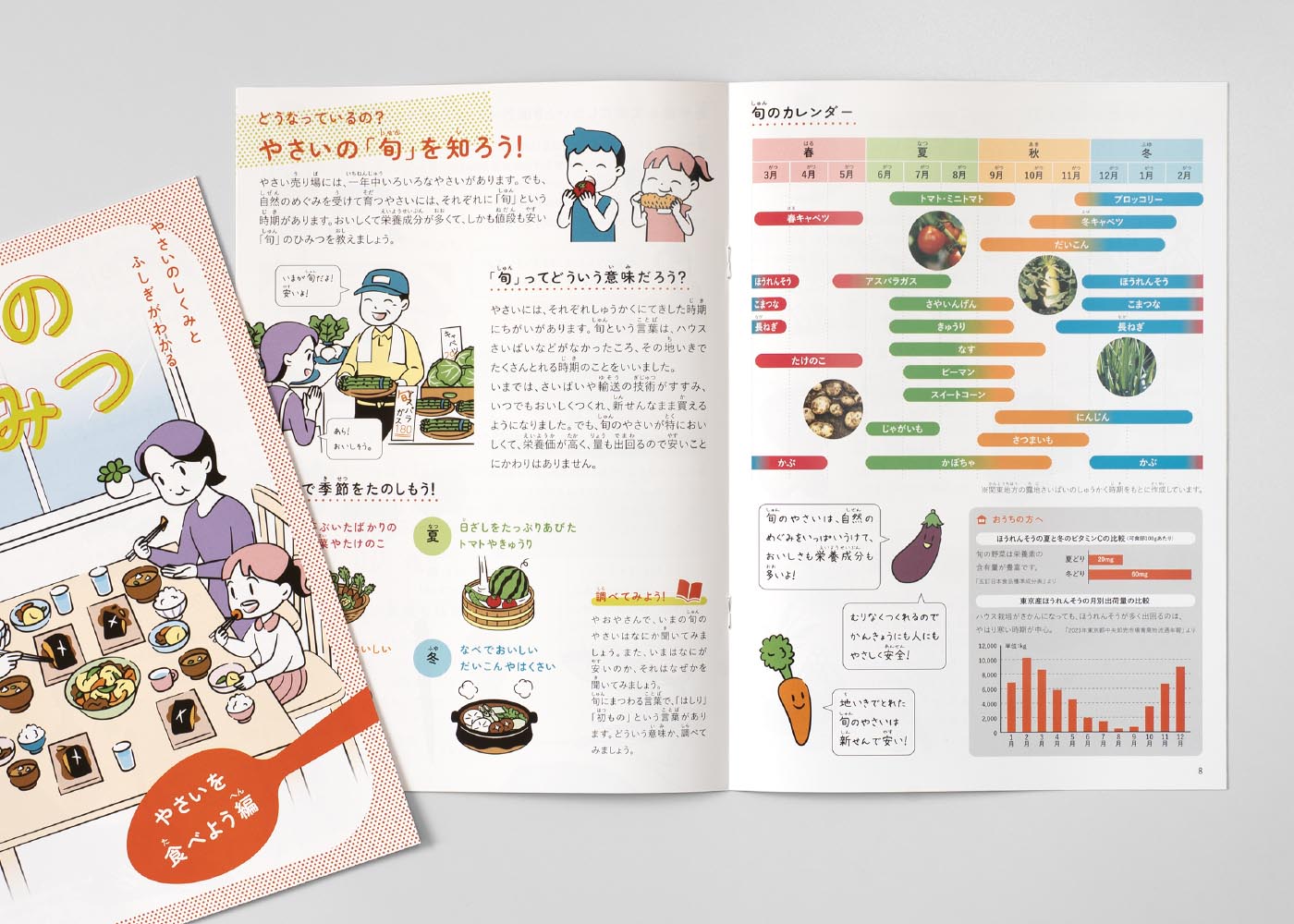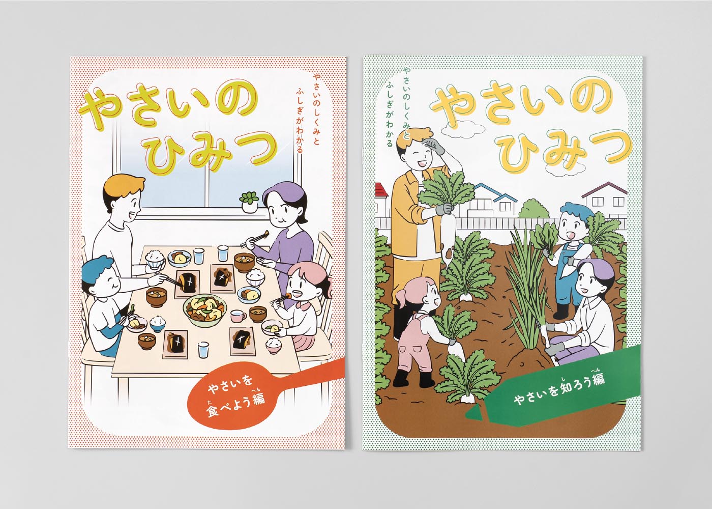 1冊のページ数を少なくして読みやすくするために、コンテンツの前半と後半を“やさいを食べる”ことと“やさいを知る”ことに分けて、2冊構成にしました。